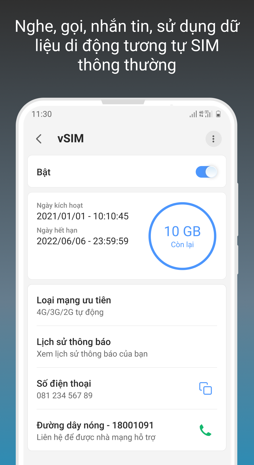 - Sử dụng vSIM mà không cần tháo, lắp như SIM vật lý
